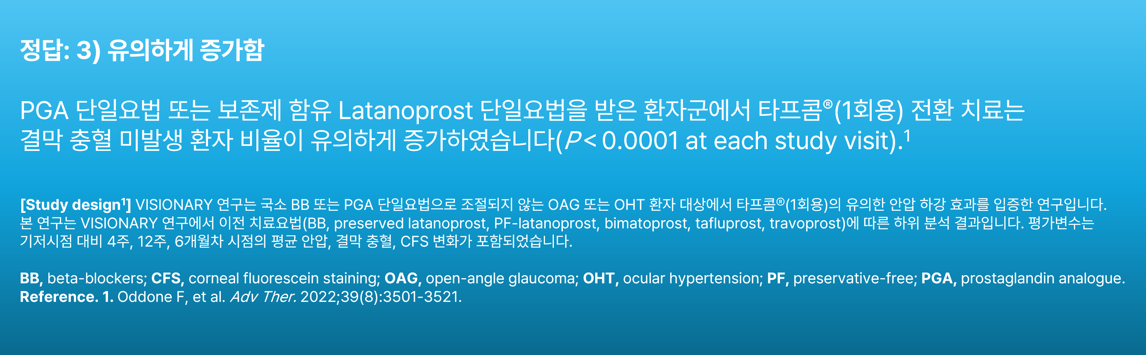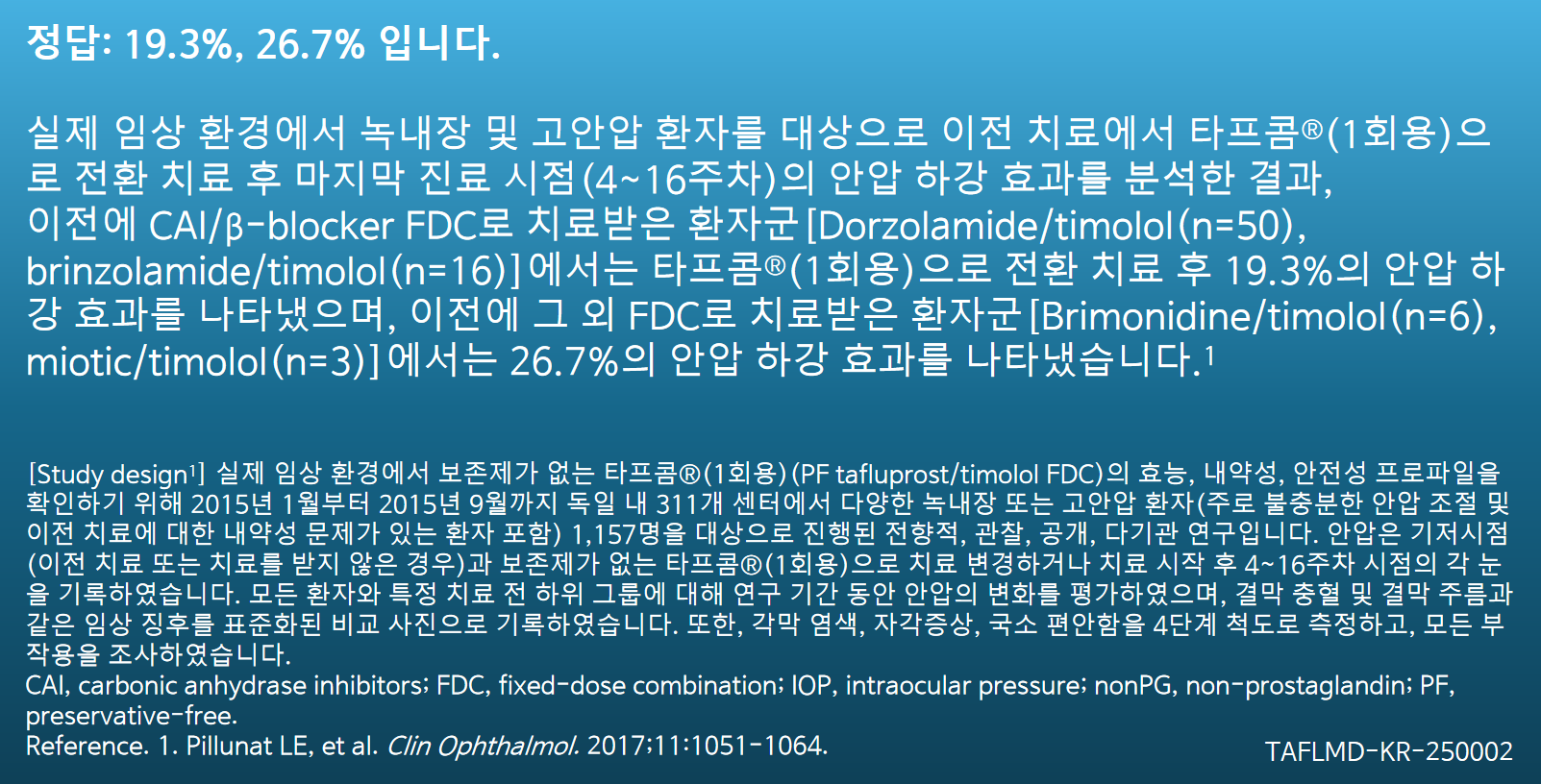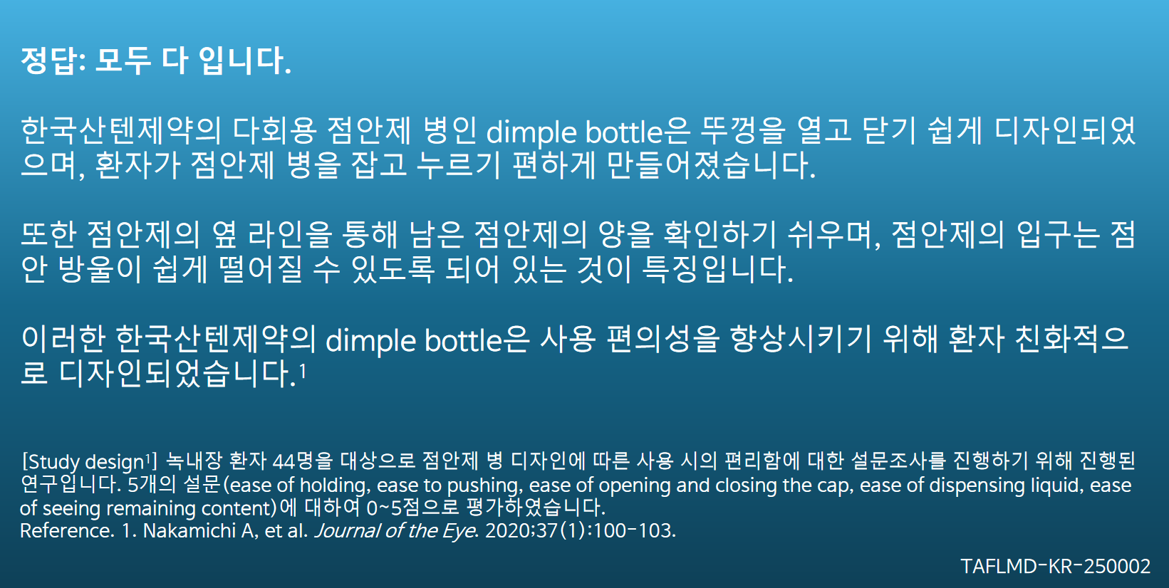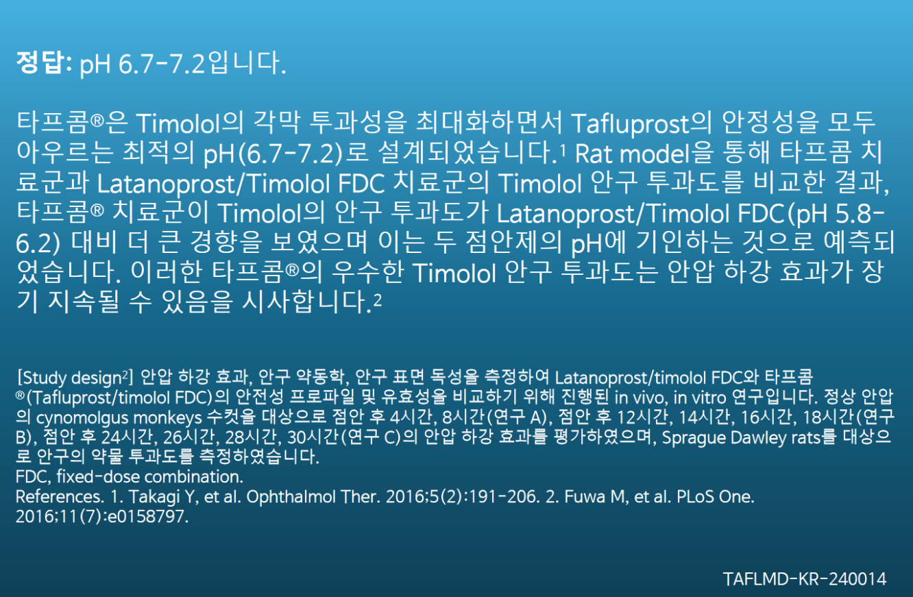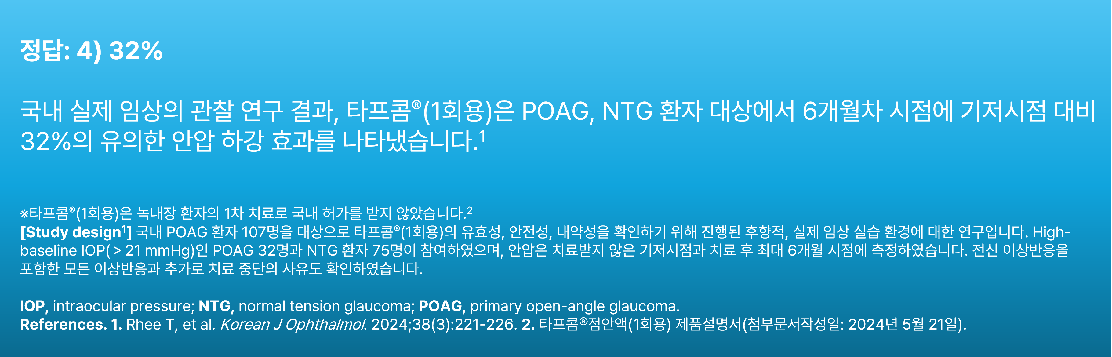본 E-Quiz는 한국산텐제약의 Tafluprost 제품 이해도 확인을 위한 것입니다.